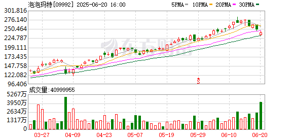 6月19日,摩根大通将泡泡玛特的目标价由250港元/股上调至330港元/股,评级为“增持”。
