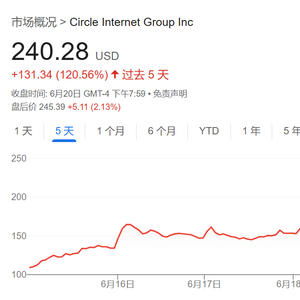 Circle最近五天的股价走势