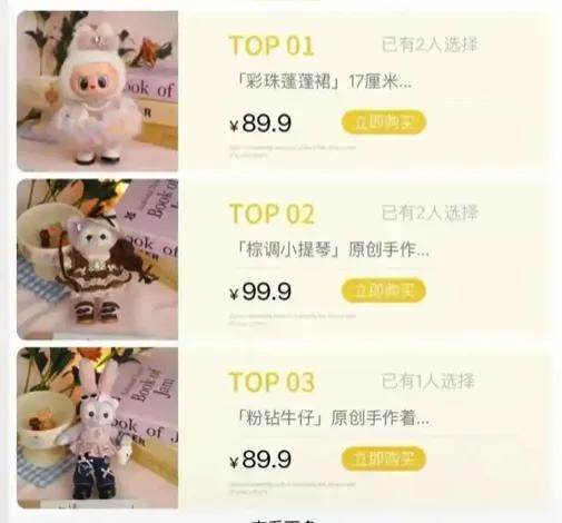 甚至一位女生凭借兼职给Labubu钩织衣服月入超2万更是冲上热搜。