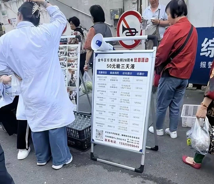 6月18日,有网友在社交媒体发布视频称,成都市金牛区一诊所推出28周年优惠活动,其中“50元输三天液”的“促销”引发争议。