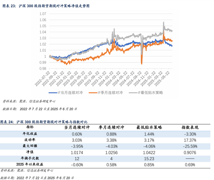2022年7月22日至2025年6月20日,基于沪深300股指期货的期现对冲策略回测结果如下图所示。