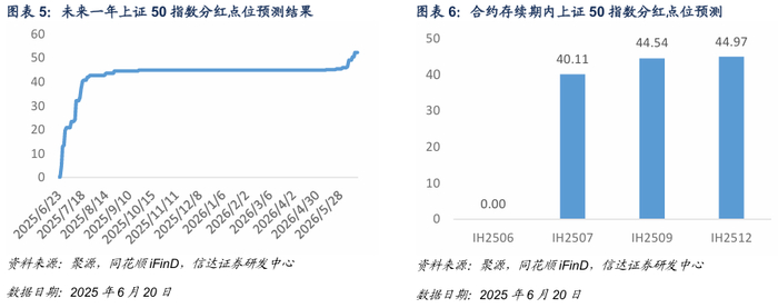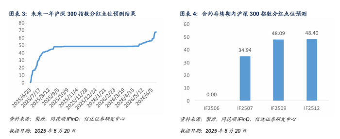 基于信达金工衍生品研究报告系列二《股指期货分红点位预测》中的方法对股指期货合约存续期内分红进行预测。