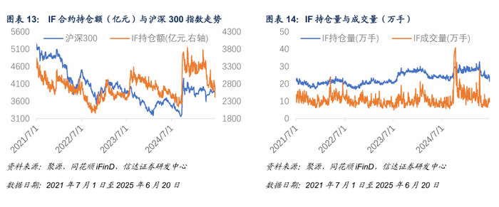 2025 年 6月20日,IF合约持仓额为2417.36亿元,持仓量21.34万手,成交量9.33万手。本周IF持仓与成交水平相对前一周降低。