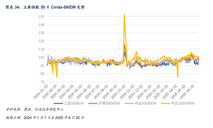 截至2025 年 6月 20日,上证 50SKEW、沪深 300SKEW、中证 500SKEW、中证 1000SKEW 分别为 101.73、106.09、97.81、105.04。