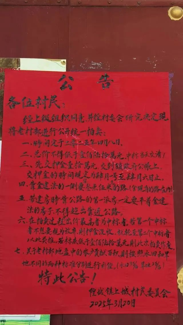 上城小学(村小)初建时占用了上城村上城组5亩余土地。今年4月份,该小学被拍卖,上城村委会承诺以每亩4.6万元的价格补偿给村民,截止目前,该笔拍卖款已到村委会账上,村委会已逐户造表,6月底前会将补偿款支付到位。