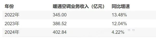 其中,暖通空调业务,是其第一大业务,有中央空调、家用空调两个板块,贡献四成收入。