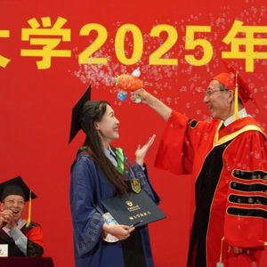 6月20日,复旦大学的本科毕业典礼上,也出现了温馨的校长与毕业生“比心”的一幕。