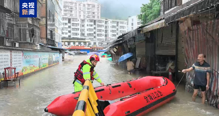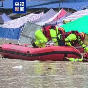 上午9时,一位六十多岁的老人被困在市场内水位较深区域,应急救援人员迅速行动,驾驶救生皮划艇赶往现场展开救援。最终,老人被转移到安全地点。