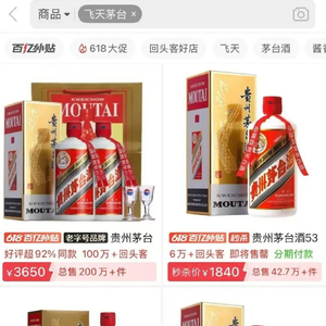 今年618,白酒的价格那叫一个“跌跌不休”。在各大电商平台的补贴“大招”下,茅台、五粮液等头部产品的“百亿补贴”价,直接击穿了批发价。就拿53度飞天茅台来说,限时补贴后,到手价最低能到1840元/瓶,跟去年同期比,那可跌了不少。