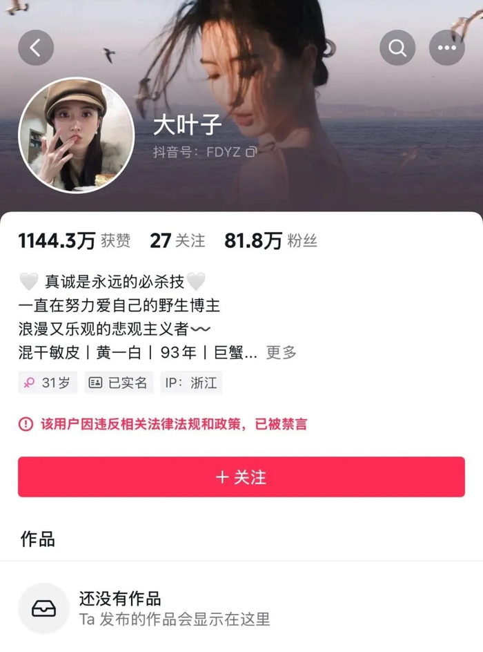 她在视频中透露,自己位于杭州一千多平方米的别墅每年电费高达40万元,超过一家小型工厂。目前,“大叶子”的抖音账号因违反相关法律法规和政策被禁言,当前粉丝为81.8万。