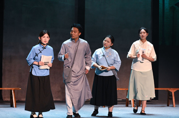 据了解,该话剧于2024年完成剧本创作,由贵州师范大学传媒学院播音与主持艺术系主任崔庆鹤老师指导,2022--2024级播音与主持艺术专业的同学们共同参演。从台词打磨到走位设计,从舞美搭建到灯光调试,剧组演员以“工匠之心”雕琢每一处细节,力求完美再现谢六逸先生在抗战烽火中坚守新闻教育阵地、推动贵州文化发展的动人故事,彰显了这位文化先驱在时代洪流中的家国情怀与责任担当。