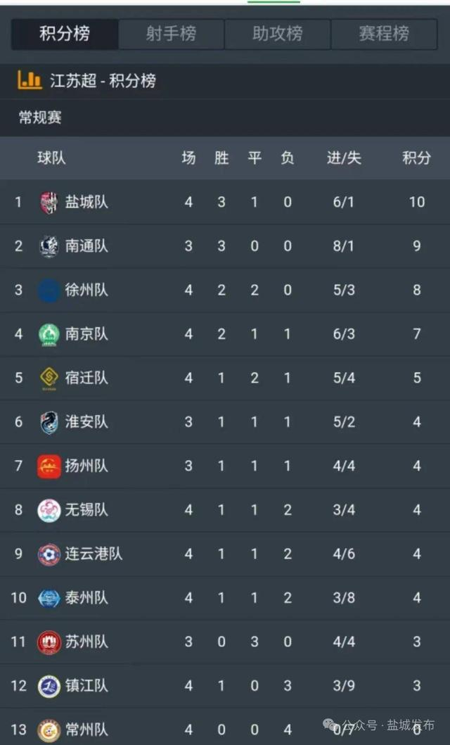 记者注意到,该场比赛盐城队夺得3分,截至6月21日晚,盐城市累计已获得10分,以1分领先南通暂列“苏超”积分榜排名第一。