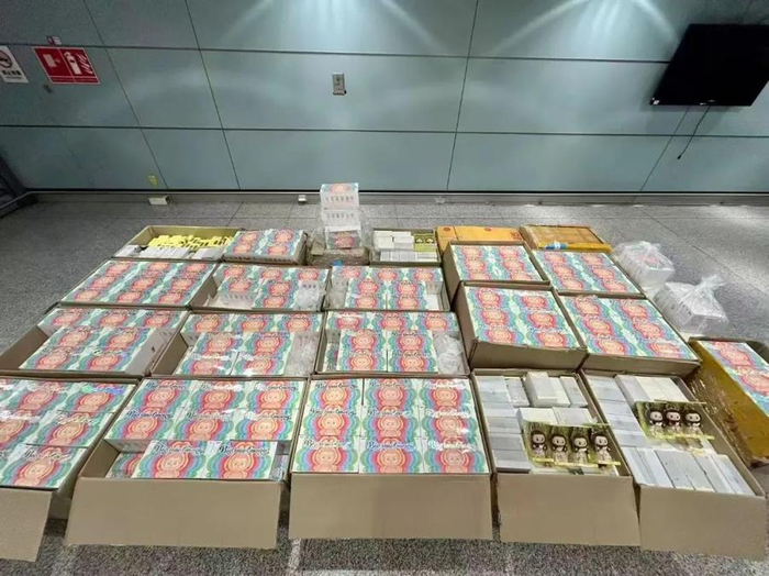 近日,昆明长水机场海关查获违规携带泡泡玛特玩偶427盒,共计3086个。