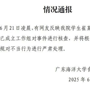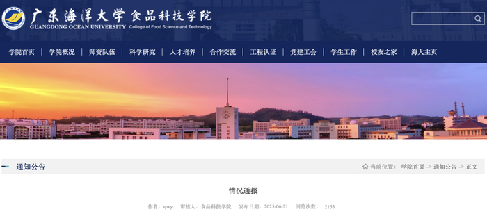 21日,广东海洋大学食品科技学院发布一则情况通报,全文如下: