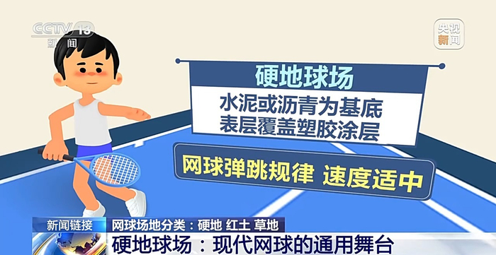 网球场地分类:硬地、红土、草地