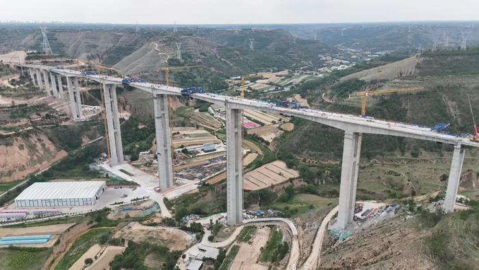 盖家川特大桥全长1384米,主墩高166米,最大跨径160米,属于西合一级公路项目第二座连续钢构特大桥,是西合公路项目的关键控制性工程。