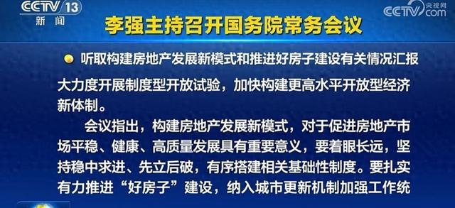 先来看国常会的具体内容。此次会议听取构建房地产发展新模式和推进好房子建设有关情况汇报。