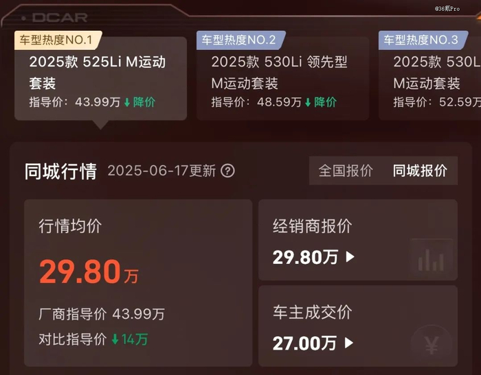 “我自购了一辆5系给家里人用,开店10年,这是我见过的*的售价”,经销商人士老刘告诉36氪。