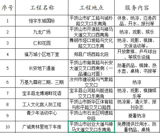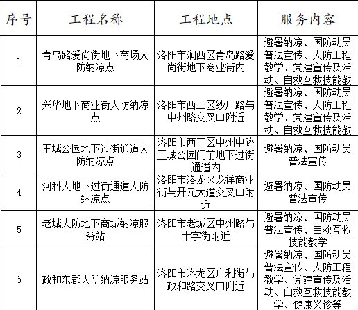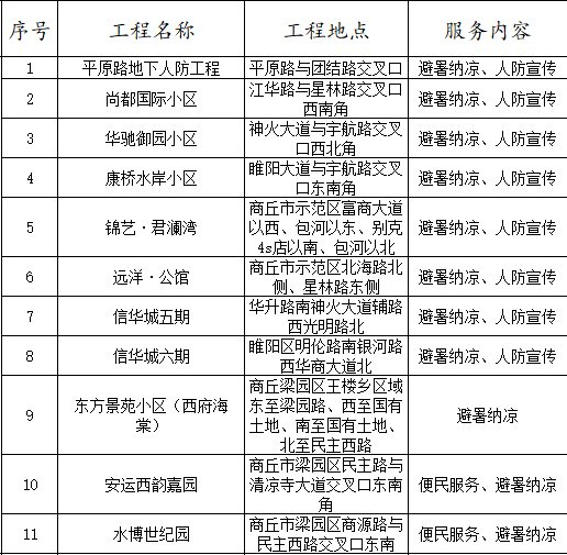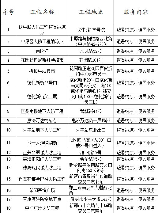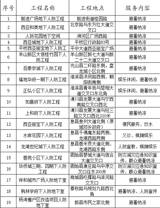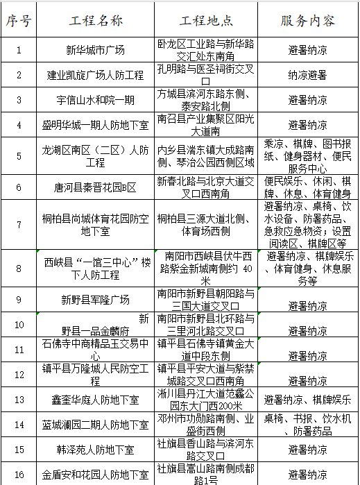 附 2025年度全省人防工程纳凉服务点一览