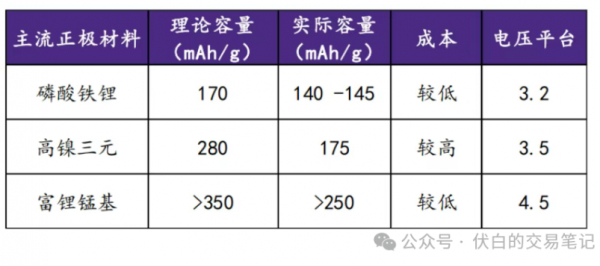 (4)富锂锰基:能量密度更高,成本更低、安全性更好。