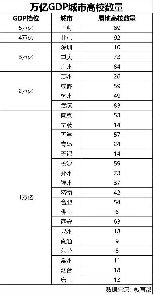 不只是深圳、苏州,几乎所有万亿城市都在积极建大学。