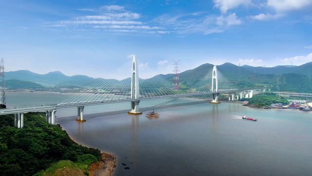 富翅门公铁两用大桥是甬舟铁路全线关键性控制工程,工程规模大,桥梁结构新颖,科技含量高,具有“两项世界第一、一项世界首创”的特点:大桥主跨388米,是世界最大跨度高低塔公铁同层斜拉桥;大桥采用超宽挑臂式钢箱梁结构,是世界最宽挑臂式钢箱梁大桥;挑臂式钢箱梁采用分离式结构中穿桥塔,在世界首创采用桥塔中穿挑臂式钢箱梁斜拉桥。该大桥由沪杭客运公司建设管理,中国铁建大桥局承建。