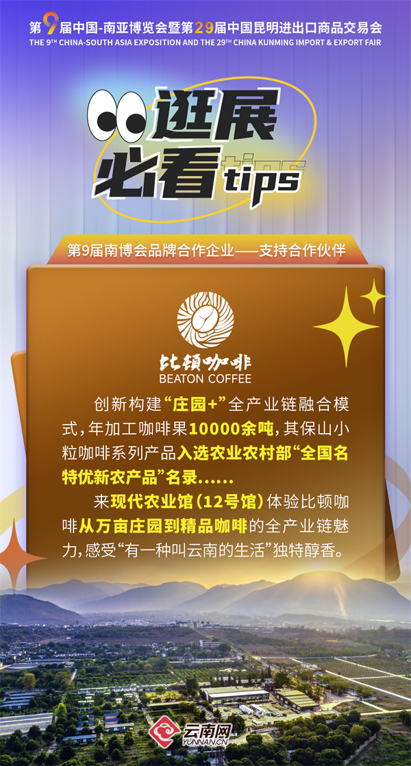 此次亮相第9届南博会12号馆,比顿咖啡不仅展示了其全产业链的实力与精品咖啡的卓越品质,更彰显了云南本土咖啡企业深耕产业、勇于创新、追求卓越的精神,为“有一种叫云南的生活”增添了浓郁的咖啡醇香。