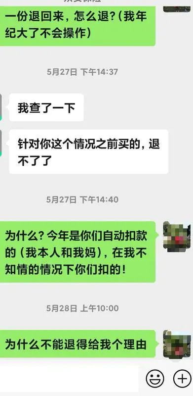在交流过程中,这名“工作人员”不断向他推销其他保险产品,被蒋老伯果断拒绝,他只想退掉这份“沪惠保”。见推销无果,这名“工作人员”留下一句“一旦自动续保,就退不了”后便没了消息。