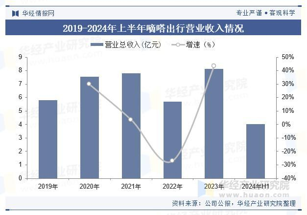 嘀嗒出行成立于2014年,是专注顺风车和出租车两大业务的互联网出行平台。嘀嗒出行的业务模式主要围绕顺风车和智慧出租车服务展开,采用双轮驱动的策略:一方面,通过顺风车平台共享私人乘用车闲置车座,实现车主与乘客之间的精准匹配,为用户提供便捷、经济的出行选择;另一方面,推出了智慧出租车服务,通过移动互联网技术赋能传统出租车行业,提升出租车的运力利用率和用户体验。2024年上半年,嘀嗒出行营业总收入为4.04亿元。