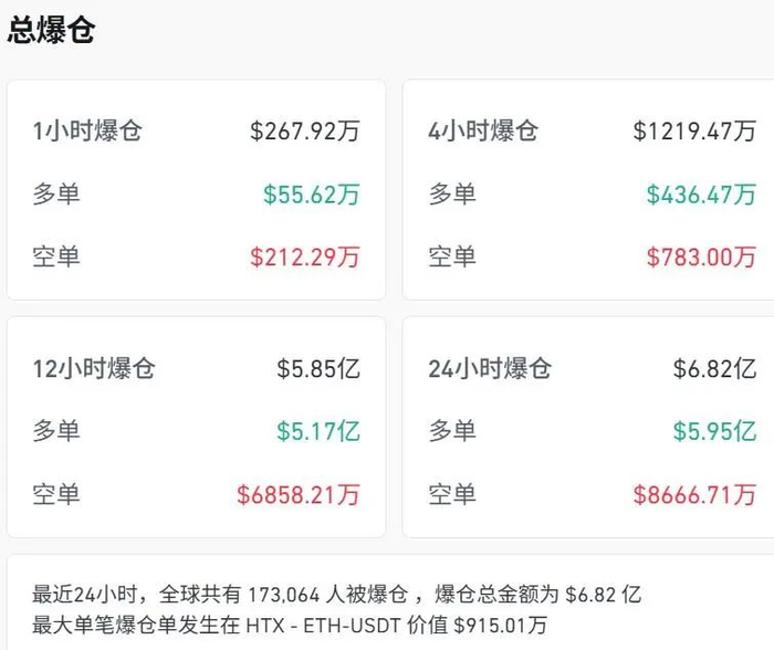 过去24小时,全球共有超17万人被爆仓。