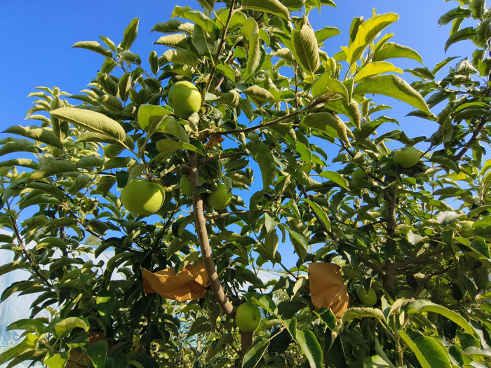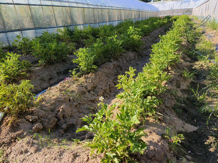 瓜棚里,吊秧西瓜虽然快采收完了,旁边的哈密瓜和甜瓜却是马上要进入果实“甜蜜”期,看着一个个等待被“抱走”的大哈密瓜满满当当地坠在秧上,不由让人生出一种“这真的是自己长出来的?”的疑问,甚至想要上前数数一道田垄里会有多少个瓜。