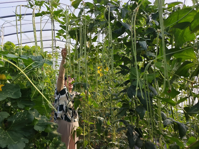 一串串红彤彤的番茄挂在秧架,一根根长长的豆角长成了密密的“珠帘”,一个个胖胖的哈密瓜“藏不住”自己成熟的身影,还有可爱的贝贝南瓜、紫得发亮的大茄子、外皮绿的发黑的西葫芦、露天自由生长的韭菜……盛夏时节,位于丰台区王佐镇南岗洼村的本源农场里早已唱起了丰收的歌谣。