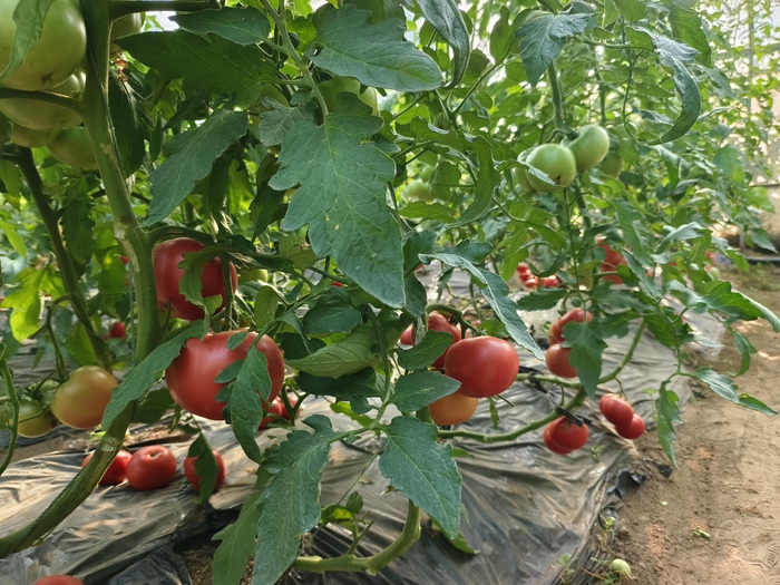 “番茄采摘旺季大概在每年的4月至7月、11月至春节,夏季这茬番茄估计再摘一个月就收尾了,但是这些果子个头还是很大,品质也还不错,这是因为我们的番茄是有机食品,土壤都是按照要求施有机肥,肥力很足。”工作人员贾婉秋告诉记者。为保证番茄的有机种植环境,园内其他果蔬也都按照有机食品要求进行管护,使用有机肥、羊粪、豆饼等保持土壤肥力,所以各种蔬菜瓜果长得都不错。
