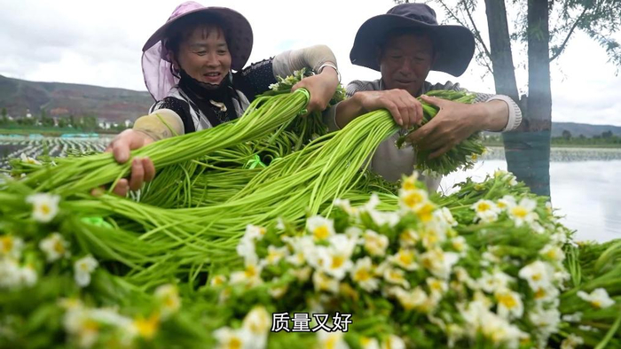 海菜花原产洱海,对水质要求极高,水清则花盛,水污则花败。因此,海菜花被称为水质的“试金石”和“风向标”,也是当地“生态菜”“致富菜”。