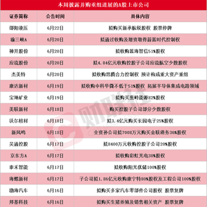 龙头6连板 本周披露并购重组进展的A股名单一览