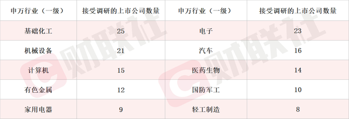 财联社6月22日讯(编辑 宣林)据Choice数据统计,截至今日,沪深两市本周共218家上市公司接受机构调研。按行业划分,基础化工、电子和机械设备行业接受机构调研频度最高。此外,家用电器、轻工制造等行业关注度有所提升。