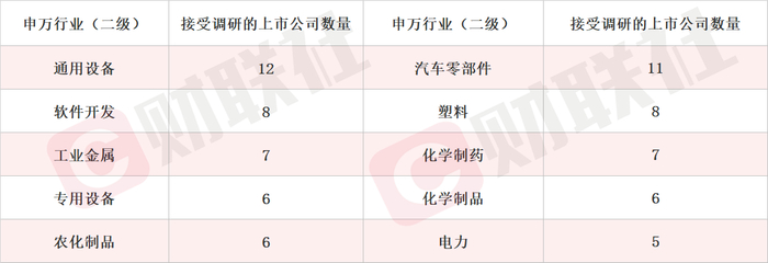细分领域看,通用设备、汽车零部件和软件开发板块位列机构关注度前三名。此外,农化制品、电力等行业机构关注度提升。
