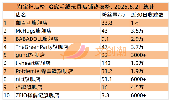 治愈毛绒玩具店铺热卖榜,前五名分别是: