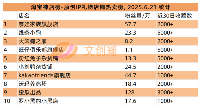 本周统计到的原创IP礼物店铺热卖榜,前五分别是: