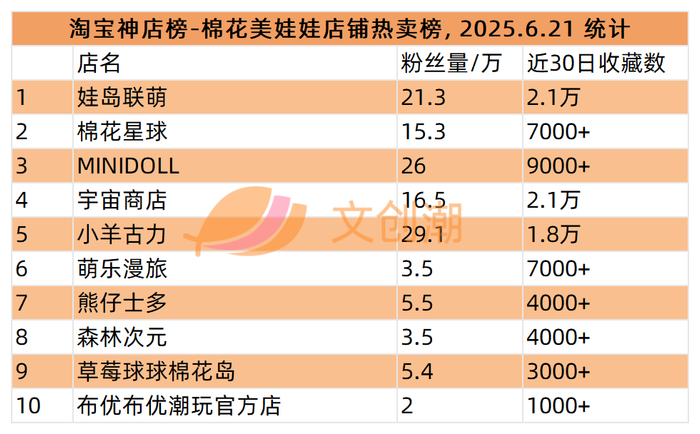 棉花美娃娃店铺热卖榜,前五分别是:
