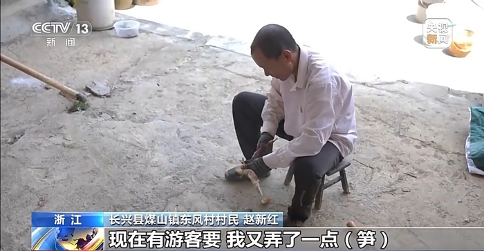 长兴县煤山镇东风村村民 赵新红:感觉很好卖,现在有游客要,我又弄了一点笋,把好一点的挑出来,价格比批发上门收好多了。