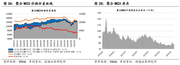 本周国内聚合MDI下游采购气氛清淡。冰箱冷柜行业需求偏弱,大型工厂多为厂家直供户;无甲醛板材胶黏剂、板材大厂、汽车行业需求淡稳,这几大行业多为国内厂家直供客户;北方外墙喷涂、管道保温行业、中小冰箱厂、中小型胶黏剂厂、冷库等行业采购气氛清淡。