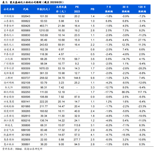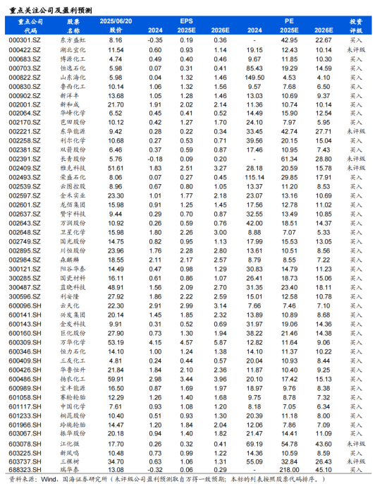 风险提示:宏观经济变化;油价震荡变化;环保趋严;产品价格大幅波动;重点关注公司业绩不达预期;中美财政政策不及预期;化工产品去库低于预期;AI数据中心建设和航空航天材料需求不及预期;全球经济增长的不确定性;磷矿石价格大幅下行等。