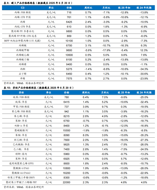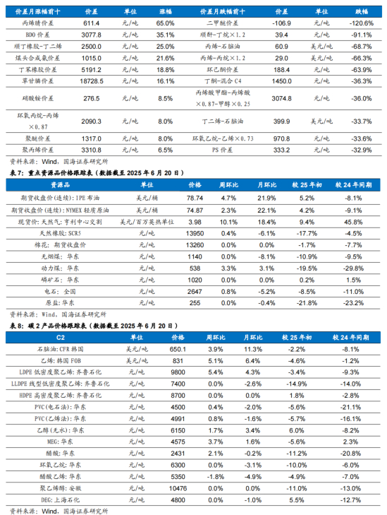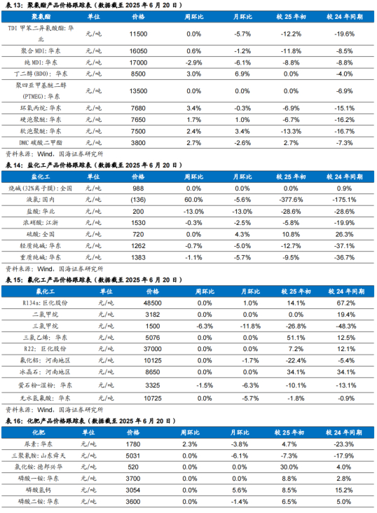 根据Wind,2025年6月20日顺酐价格为5900元/吨,环比6月13日下降50元/吨;据卓创资讯,2025年6月20日丁酮价格为6667元/吨,环比6月13日上升208元/吨。