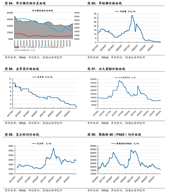 据Wind和百川盈孚,2025年6月20日功夫菊酯原药价格为10.7万元/吨,较6月13日持平;联苯菊酯原药价格为12.9万元/吨,较6月13日持平;草甘膦原药价格为2.44万元/吨,较6月13日上涨0.04万元/吨。