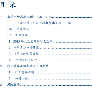 游戏:完美世界旗下《异环》周末公布2测前瞻,包含新内容+开放世界要素&玩法填充+优化+移动端+抽卡系统,关注26号正式启动后表现。核心产品高频数据趋势维持,巨人网络旗下《超自然行动组》免费榜维持5-10名附件震荡,吉比特旗下《道友来挖宝》小程序畅销榜维持5-8名震荡;看好本轮产品周期释放带来的中腰部游戏公司基本面弹性,建议关注巨人网络、恺英网络、吉比特、完美世界等。