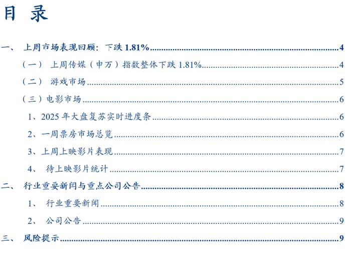 风险提示:传媒、教育、互联网政策监管政策再次趋严,部分公司业绩表现不及预期,用户消费能力复苏不及预期。