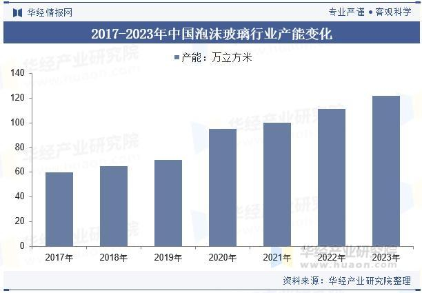 中国泡沫玻璃行业的产能变化主要受市场需求和政策导向的影响。近年来,随着建筑节能标准的提高和绿色建筑材料需求的增加,泡沫玻璃行业的产能逐步扩张,厂商加大了投资和技术升级,以满足日益增长的市场需求。2023年中国泡沫玻璃行业产能约为122万立方米。