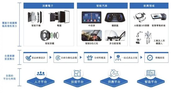 蓝思科技的业务涵盖玻璃、金属、蓝宝石、陶瓷、塑胶、皮革、玻纤、碳纤维等材料,以及与之配套的辅料、工装夹具模具、生产设备、检测设备、自动化设备、自主研发的工业互联网系统等。