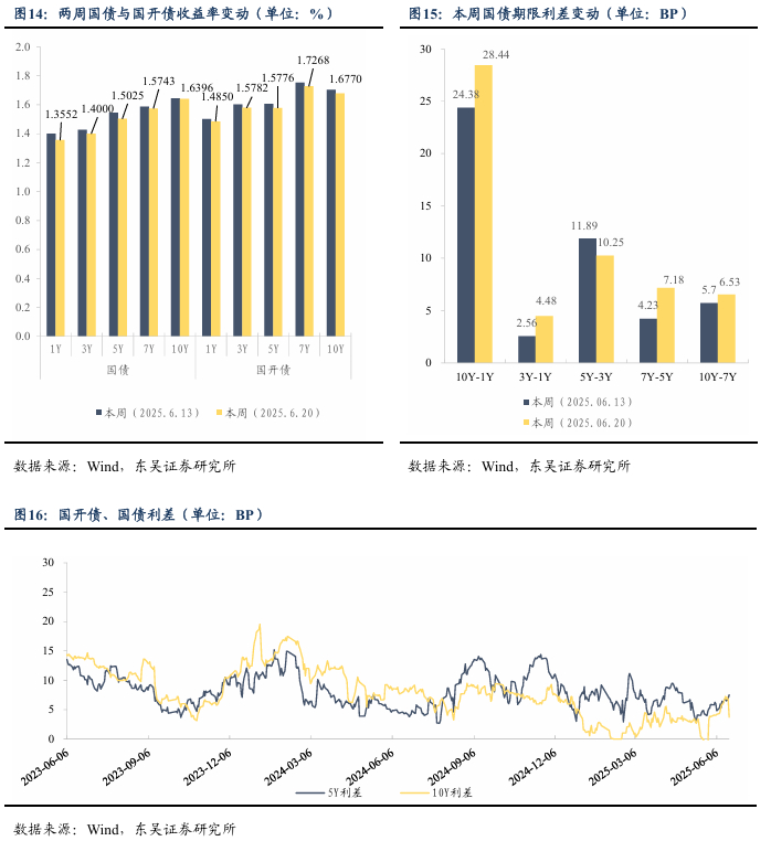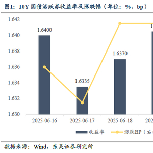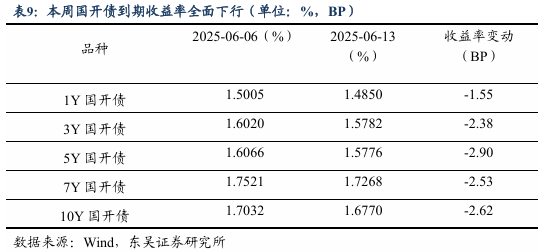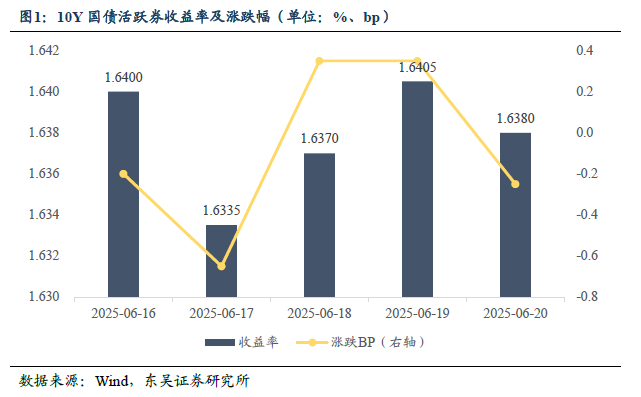 本周(2025.6.16-2025.6.20),10年期国债活跃券收益率从上周五的1.642%下行0.4bp至1.638%。